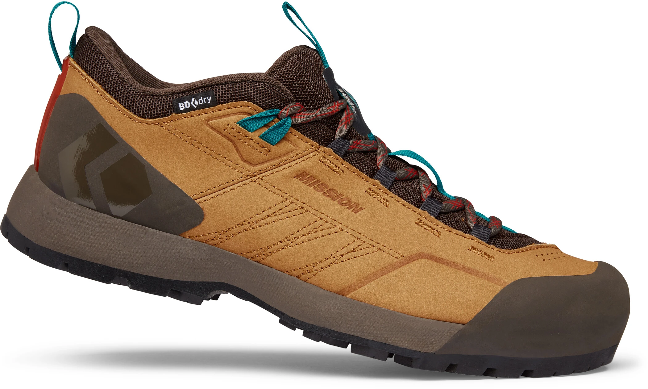 De Mission Leather Low WP is een duurzame, waterdichte approach schoen die steun en bescherming biedt bij elke stap en geschikt is voor alle seizoenen en terreinen. Dankzij het hoogwaardige nubuckleren bovenwerk en de waterdichte en ademende BD.dry-voering houdt deze schoen je voeten droog op natte paden en sneeuwvelden. De klimspecifieke voorvoet- en teenconstructie met BlackLabel bergrubber heeft een goede grip en zorgt voor precisie wanneer het parcours uitmondt in een klimpassage. Het diepe profiel zorgt voor een goede grip, zelfs op modderige oppervlakken, terwijl de tractie over de hele lengte met padding voor extra comfort beschermt tegen het binnendringen van vuil. De perfect afgestemde EVA-middenzool biedt voldoende stijfheid en precisie op steil terrein en via ferrata, en verschillende webbing-lussen bieden bevestigingsmogelijkheden wanneer de aanpak eindigt en het klimmen begint.