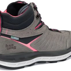 Comfortabel, lichtgewicht en multifunctioneel – de Blueridge ES is een veelzijdige lichtgewicht wandelschoen uitgerust met tal van duurzame eigenschappen. Naast het duurzame Perwanger bovenleer en het 100% gerecyclede bovenmateriaal volgens de Global Recycling Standard’, omvat dit vooral ook het volledig PFC-vrije membraan. Waterdicht, ademend, duurzaam – dit PU-membraan is gebaseerd op een complex, hydrofiel systeem dat waterdichtheid en ademend vermogen bereikt terwijl het gebruik van fluorkoolstoffen volledig wordt vermeden. Het voor de Blueridge ES gebruikte materiaal is uitsluitend afkomstig van Europese leveranciers; de schoen wordt volledig in Europa vervaardigd. De nadruk ligt op absoluut comfort. De schoen bewijst dit met een perfecte pasvorm en de innovatieve tussenzool: Dit is een driedimensionale structuur van compact en geëxpandeerd polyurethaan die een soort schaal vormt waarin de voet comfortabel ligt. Een verhoogde zoolrand van stabiliserend PU biedt extra steun rond de voet en bij de hiel. Bovendien zorgt een thermovormbaar schuim in de 3D-BreathFit tong ervoor dat de anatomische asymmetrie van de voeten individueel kan worden gecompenseerd. Dankzij de antislip Terragrip loopzool met 4 mm profieldiepte en grote – aan de vrouwelijke anatomie aangepaste – noppen met een breed contactoppervlak rolt de voet niet alleen gemakkelijk en harmonieus, de modern vormgegeven Blueridge ES voelt ook op de meest uiteenlopende ondergronden comfortabel aan – van het herfstige, natte middelgebergte tot het mediterrane, zanderige kustwandelpad.