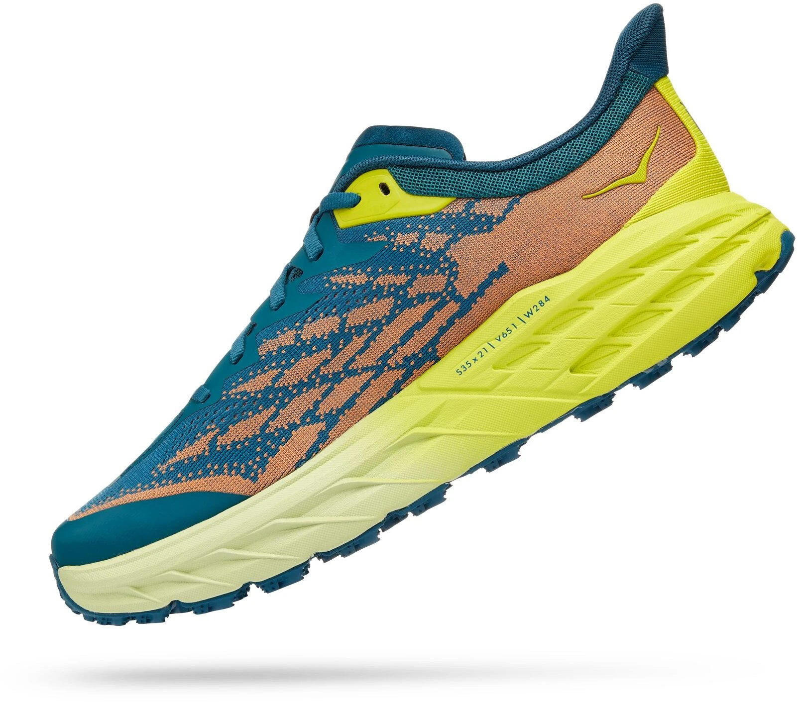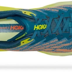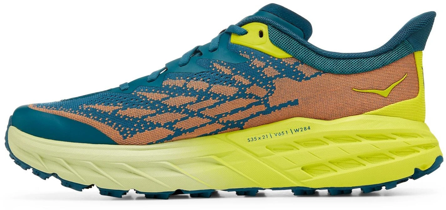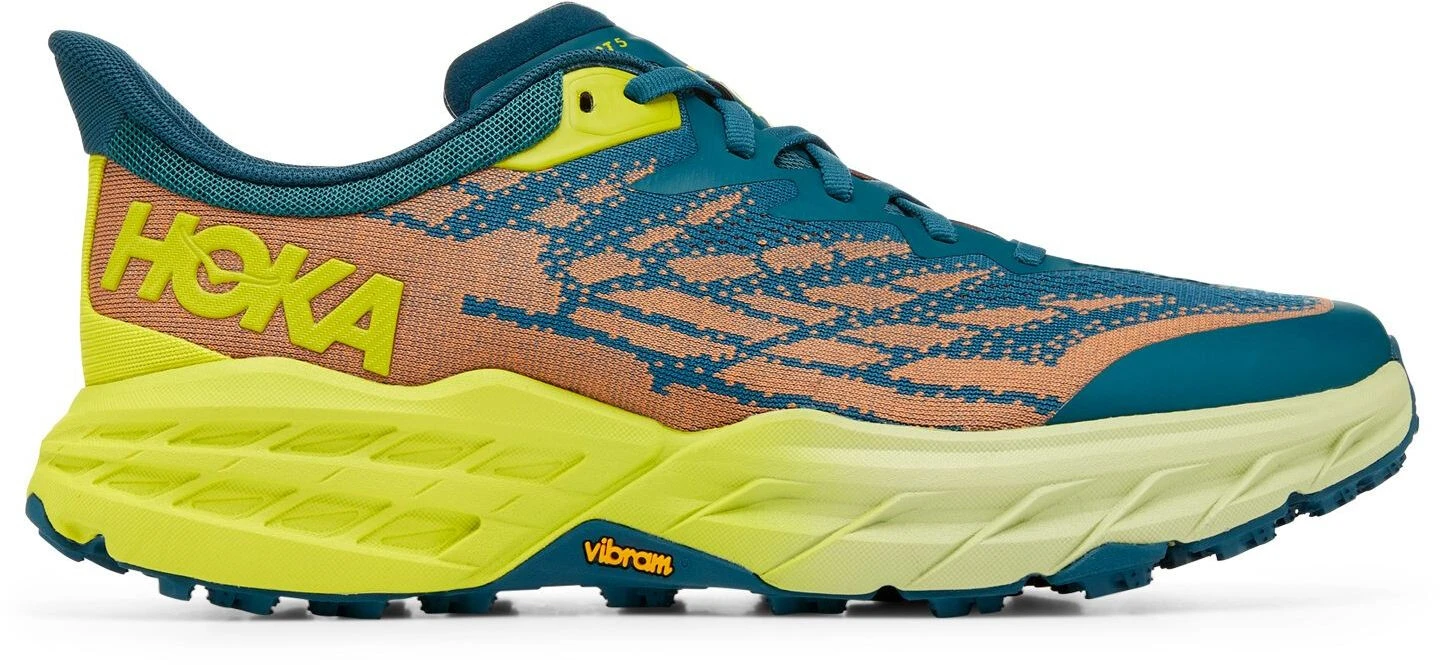 Een werkpaard voor technische trails, de Speedgoat is terug met minder gewicht en meer tractie dan ooit tevoren. Een nieuwe schoen van de buitenzool tot de veters, dit trail beest is bijgewerkt met Vibram Megagrip met Traction Lug voor betere grip op losse grond. Met dezelfde bouwhoogte en hetzelfde rockerprofiel heeft de Speedgoat 5 een lichtere tussenzool en een robuuster, dubbellaags jacquard mesh dat vertrouwen geeft op elk terrein.